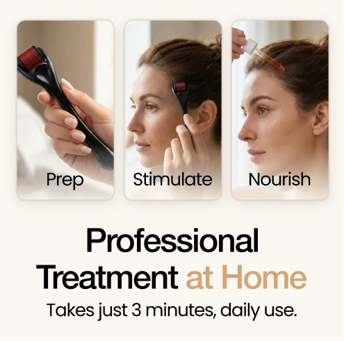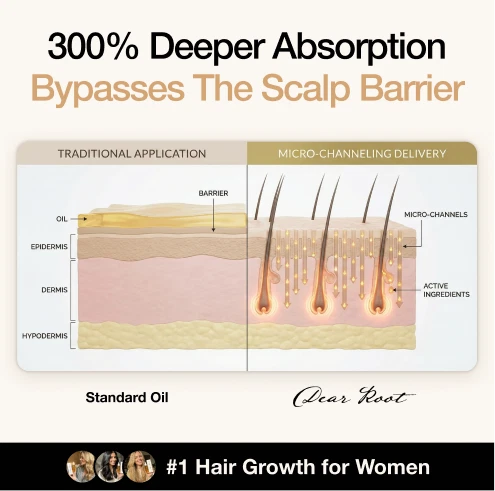 Stop hiding thinning spots. The DearRoot Hair Growth Bundle uses micro-stimulation and herbal actives to boost volume.